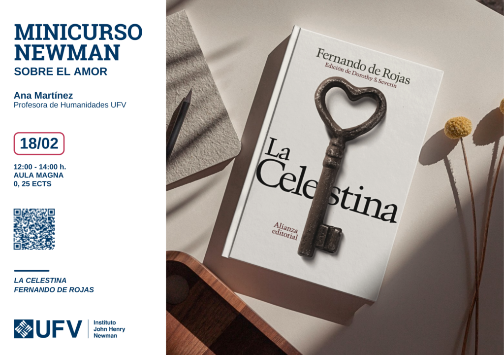 El Minicurso Newman es un curso de dos horas para abordar con mayor profundidad las preguntas del Café Newman, buscando, de la mano de un profesor, posibles respuestas. El método es siempre el mismo: usar una obra literaria o artística como punto de partida. La cultura, como expresión del ser humano y de su drama existencial, se convierte así en la vía para comprender de qué estamos hechos y qué anhelamos. En esta ocasión trataremos La Celestina, de Fernando de Rojas.
