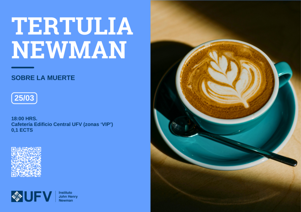 Las Tertulias Newman son un encuentro con un profesor y/o invitado especial, en el que conversaremos sobre alguna expresión cultural del tema a tratar (el sufrimiento, Dios, la muerte, la libertad, el amor). Esta actividad se ofrece a toda la comunidad UFV y todos aquellos de fuera de la Universidad que estén interesados.