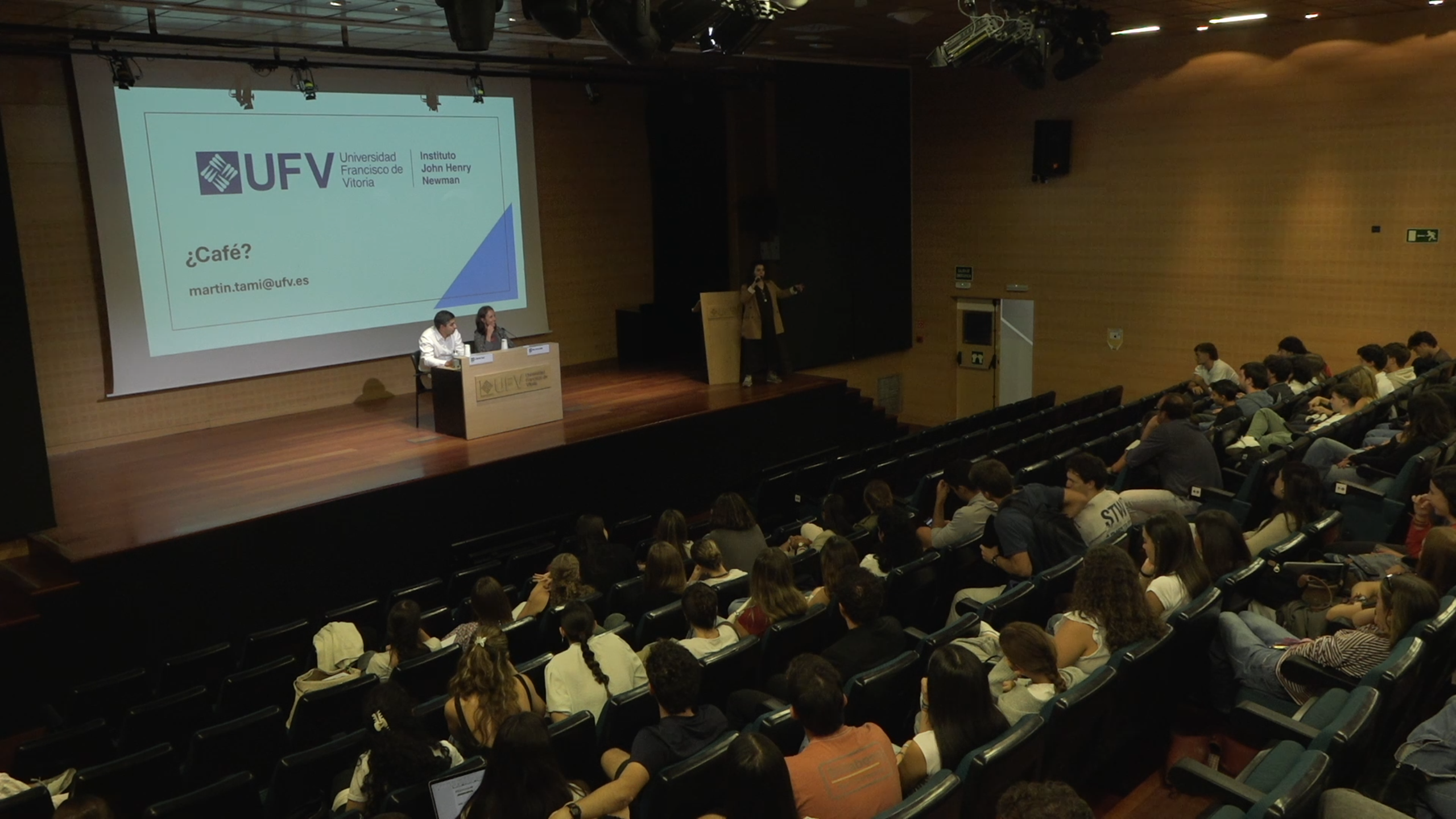 Martín Tami, profesor de Humanidades, introdujo el Café Newman sobre el sufrimiento el pasado 15 de octubre en la Universidad Francisco de Vitoria.