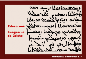 Abgar de Edesa recibió del apóstol Tadeo el Mandylion, un ícono encáustico (tercera imagen de izquierda a derecha) que se data alrededor del año 944 y que se describe como «no hecho por manos». Esta historia también se narra en un manuscrito siriaco conocido como la «Doctrina de Addai», que data de finales del siglo IV o principios del V y fue descubierto en San Petersburgo en 1878, donde actualmente se conserva.