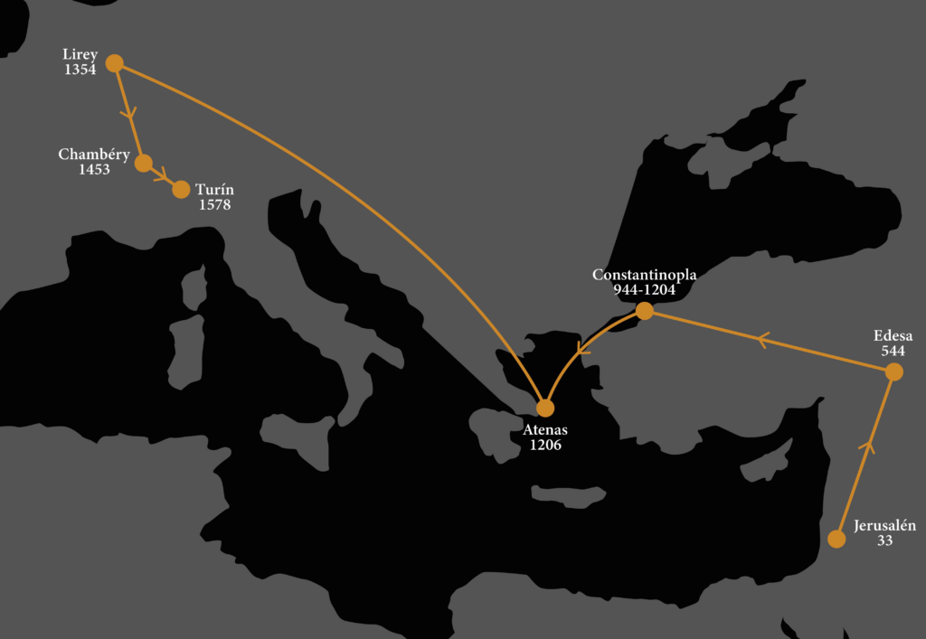La Sábana Santa ha pasado por diferentes países de Oriente y Occidente desde que saliera de Jerusalén hasta que llegó a Turín en 1578. Los primeros datos la sitúan en la ciudad de Sanli-Urfa en Turquía. Lo que fue la antigua Edesa. Actualmente se conserva en la Catedral de Turín.
