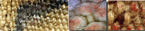 Además, se identificaron consecuencias derivadas de ciertos descuidos: según el análisis espectrográfico, en algún momento se colocó un recipiente con purpurina de plata sobre el Sudario, dejando manchas muy visibles. También se hallaron restos de carmín labial, lo que sugiere un acto de veneración hacia la reliquia.