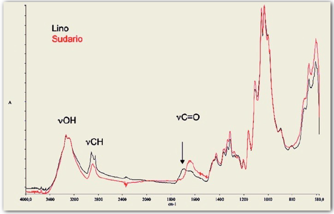 Se llevaron a cabo análisis microbiológicos para determinar si había contaminación biológica utilizando medios como patata dextrosa agar y tryptona soja agar. Se identificaron fibras limpias, fibras negras y fibras con óxido de hierro, ya que el Sudario estuvo fijado al soporte durante mucho tiempo con tachuelas de hierro. En las fibras negras se encontraron partículas metálicas como hierro, cobre y plata, propias del aceite comúnmente utilizado.
