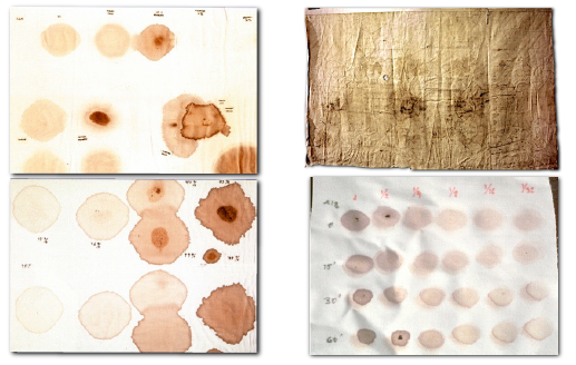 Además, se describieron las heridas visibles en ambos lienzos desde un enfoque forense, relacionándolas con la tortura sufrida por Jesús según los relatos evangélicos. Se determinó la correlación cualitativa entre ambas telas, identificando marcas duplicadas que podrían tener un origen común. Por último, se establecieron los niveles de correlación matemática, tanto lineal como angular, basándose en las nubes de puntos similares presentes en los dos lienzos.