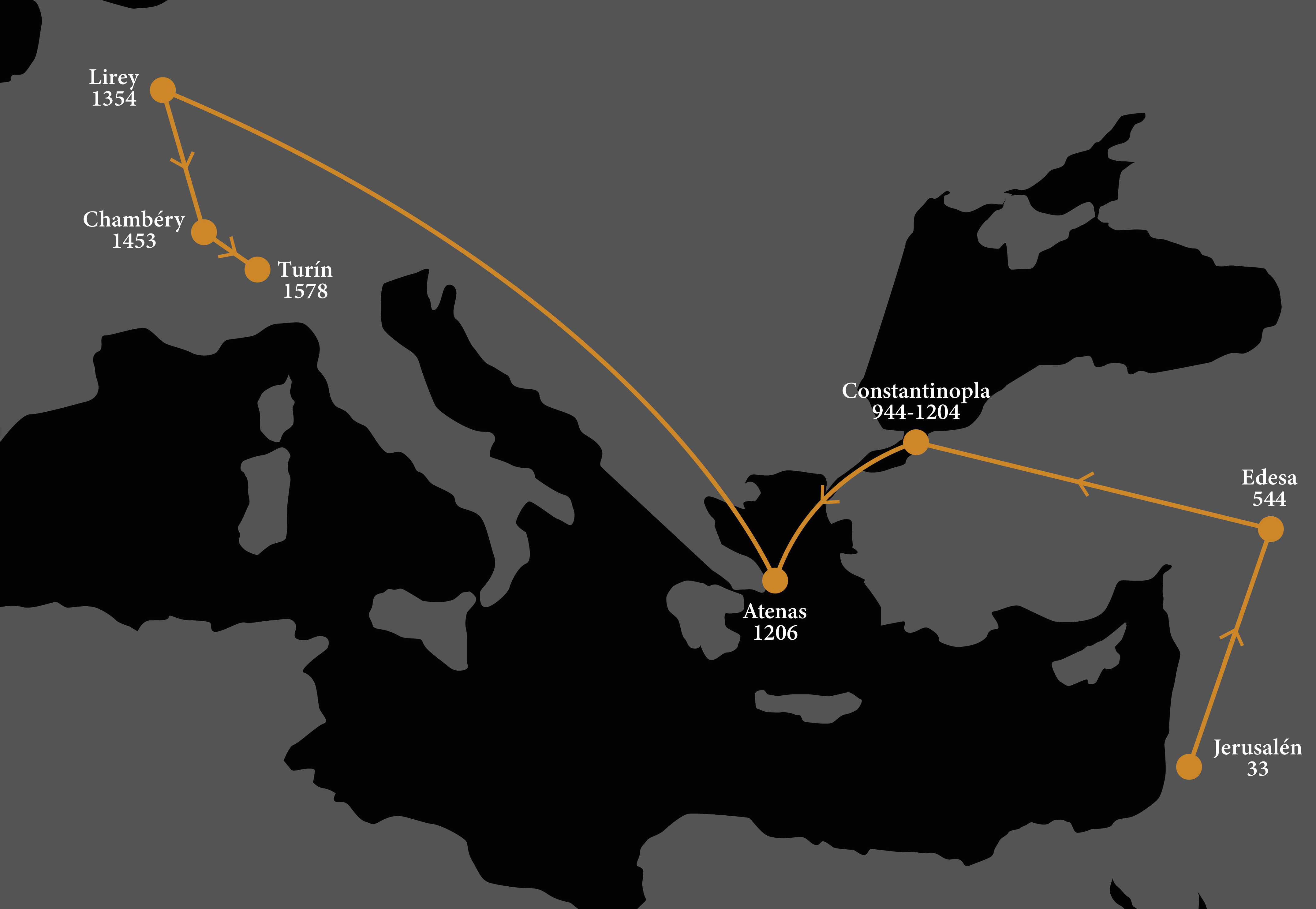 La primera referencia a un sudario venerado como reliquia proviene de un peregrino anónimo de Plasencia, alrededor del año 570, quien afirmó haberlo visto en una gruta junto al río Jordán. Hacia el 680, el obispo franco Arculfo también mencionó haberlo visto en Jerusalén.