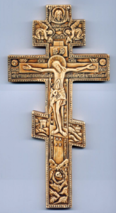 La curva de los cristos bizantinos y la cruz rusa pueden tener su origen en la Síndone. Como consecuencia de la rigidez cadavérica (rigor mortis) que se aprecia en la imagen del hombre de la Síndone la pierna izquierda aparece marcada más alta que la derecha. Esto originó la idea de que Cristo era cojo. Los bizantinos reflejaron esta supuesta anomalía en sus imágenes y llevaron a Rusia la cruz con un travesaño oblicuo para los pies. Es otro de los rastros dejados por la Síndone en su andadura por Oriente.