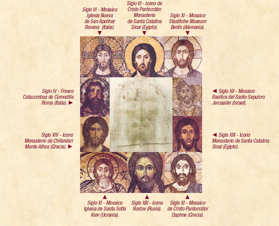 Se han creado numerosos íconos y mosaicos basados en el rostro de la Sábana, lo que permite apreciar claramente la similitud en los rasgos somáticos al realizar una comparación.