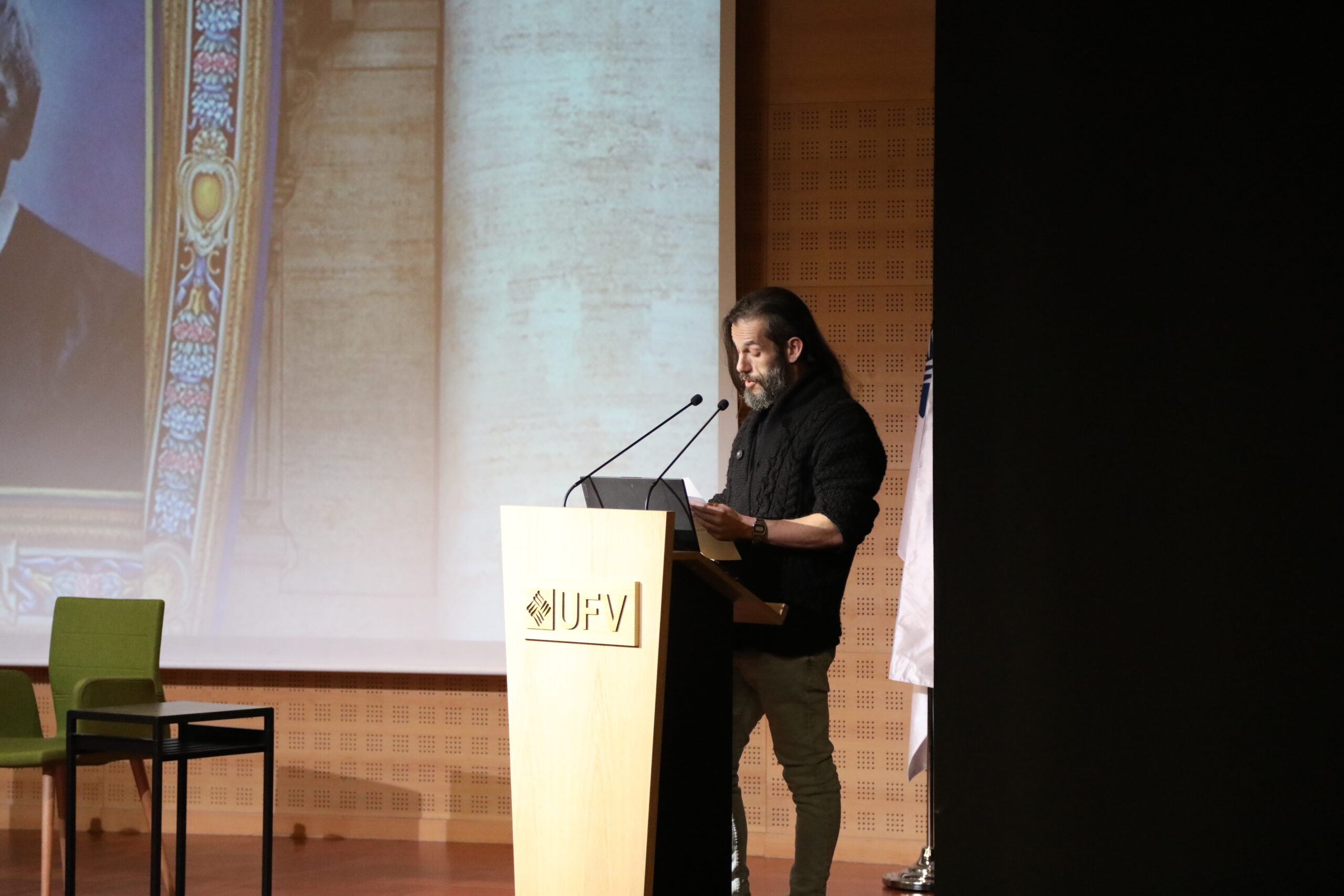 Daniel Sada, abrió la sesión planteando como desafío central de la universidad esa capacidad de formar gente que eleve la ‘temperatura de lo humano’, es decir, profesionales cuya contribución vaya mucho más allá de las exigencias de sus profesiones, capaces de defender lo que es genuinamente humano frente, por ejemplo, al avance de la inteligencia artificial. Y lo genuinamente humano, decía el rector, es la capacidad de amar y ser amados.