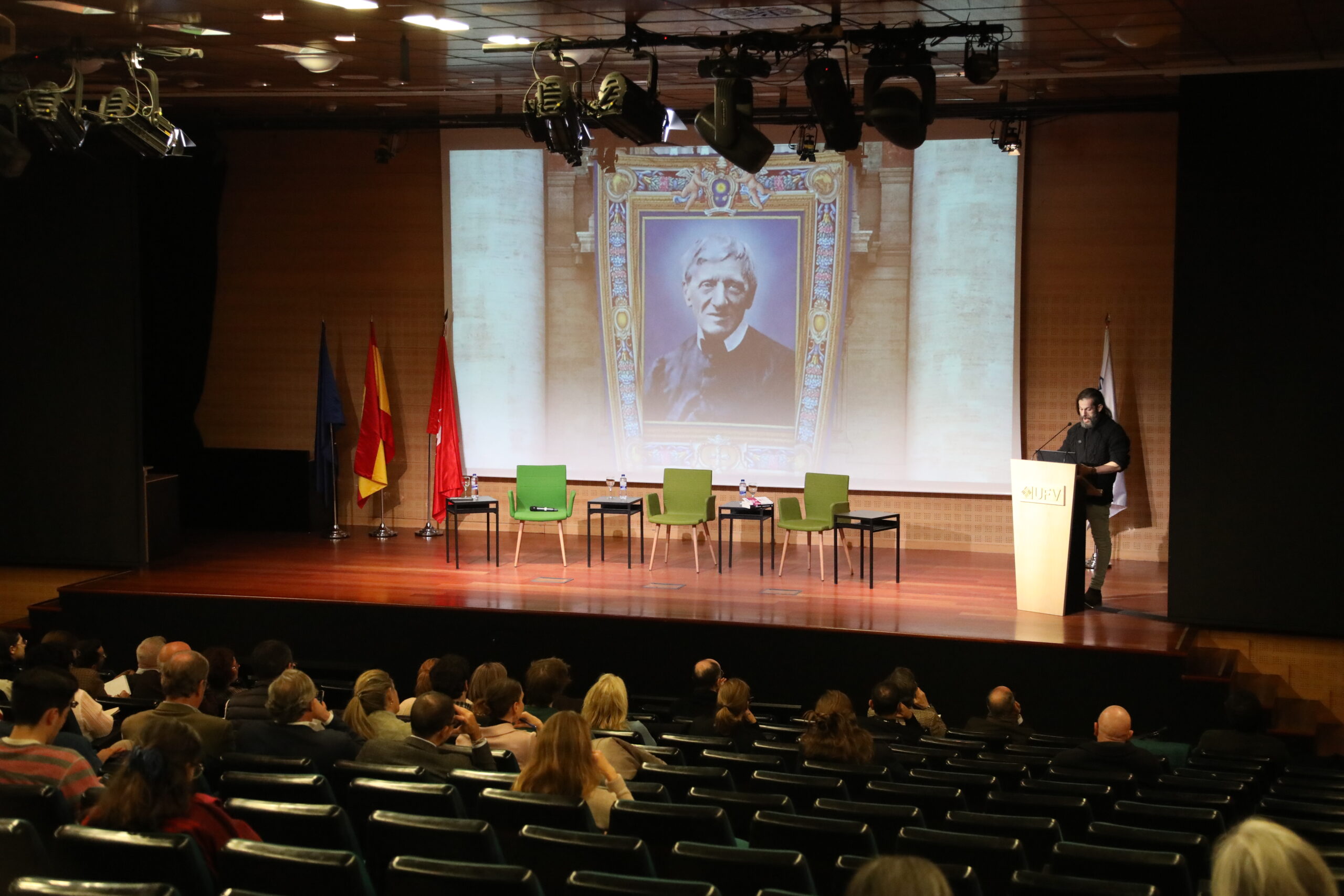 La inauguración del curso sobre John Henry Newman, que se celebró el pasado jueves 27 de noviembre, contó con Daniel Sada (rector UFV) e Higinio Marín (Rector CEU Cardenal Herrera). David Luque, profesor de la Universidad Complutense de Madrid y uno de los coordinadores del curso, introdujo el acto con una breve semblanza de John Henry Newman, repasando su vida y su aportación definitiva a la idea de educación. La clave para leer a Newman, apuntó, es la de la conciencia. Toda su obra puede comprenderse mejor si entendemos qué entendía nuestro querido santo por esa voz interior de Dios en nosotros. Toda su obra se convierte así en diálogo con el Creador.