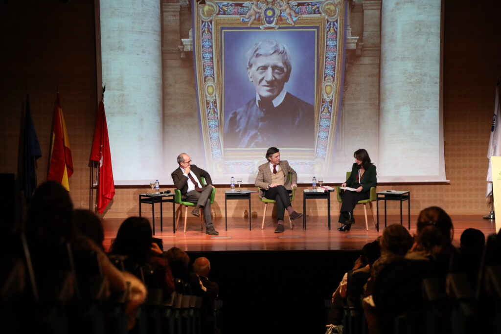La inauguración del curso sobre John Henry Newman, que se celebró el pasado jueves 27 de noviembre, contó con Daniel Sada (rector UFV) e Higinio Marín (Rector CEU Cardenal Herrera). David Luque, profesor de la Universidad Complutense de Madrid y uno de los coordinadores del curso, introdujo el acto con una breve semblanza de John Henry Newman, repasando su vida y su aportación definitiva a la idea de educación. La clave para leer a Newman, apuntó, es la de la conciencia. Toda su obra puede comprenderse mejor si entendemos qué entendía nuestro querido santo por esa voz interior de Dios en nosotros. Toda su obra se convierte así en diálogo con el Creador.