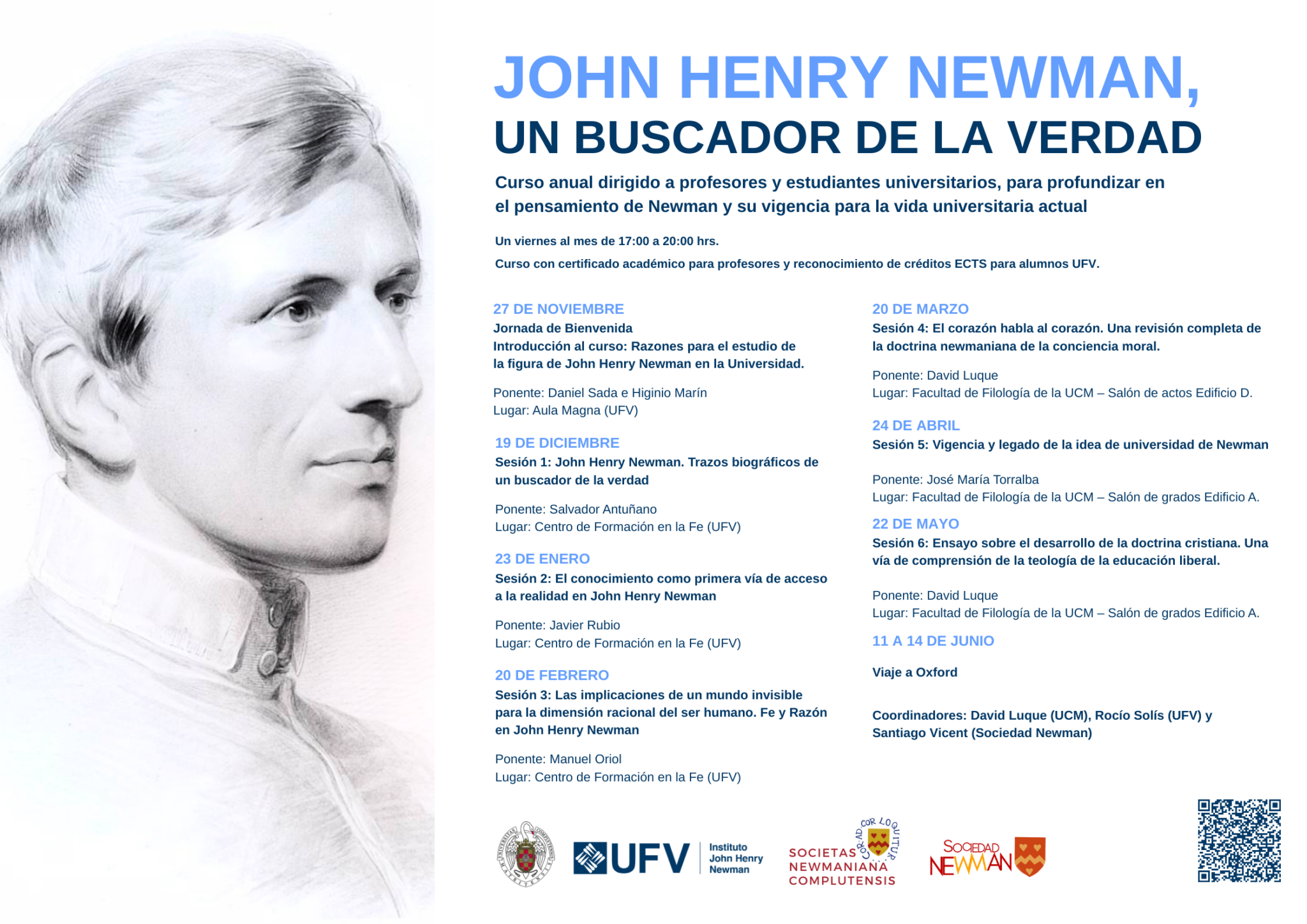 El curso, abierto a todo aquel interesado y gratuito, ofrece siete sesiones para profundizar en la figura y el pensamiento de John Henry Newman, santo y doctor de la Iglesia Católica.