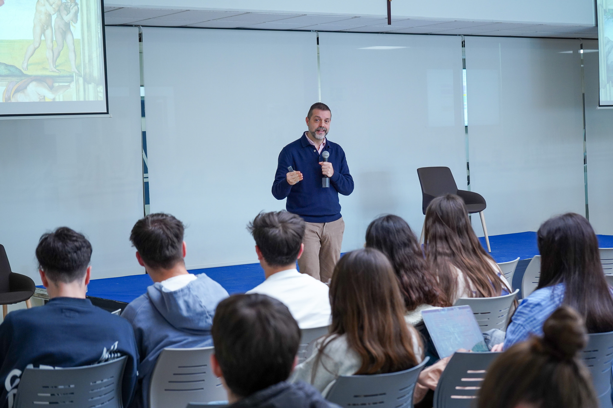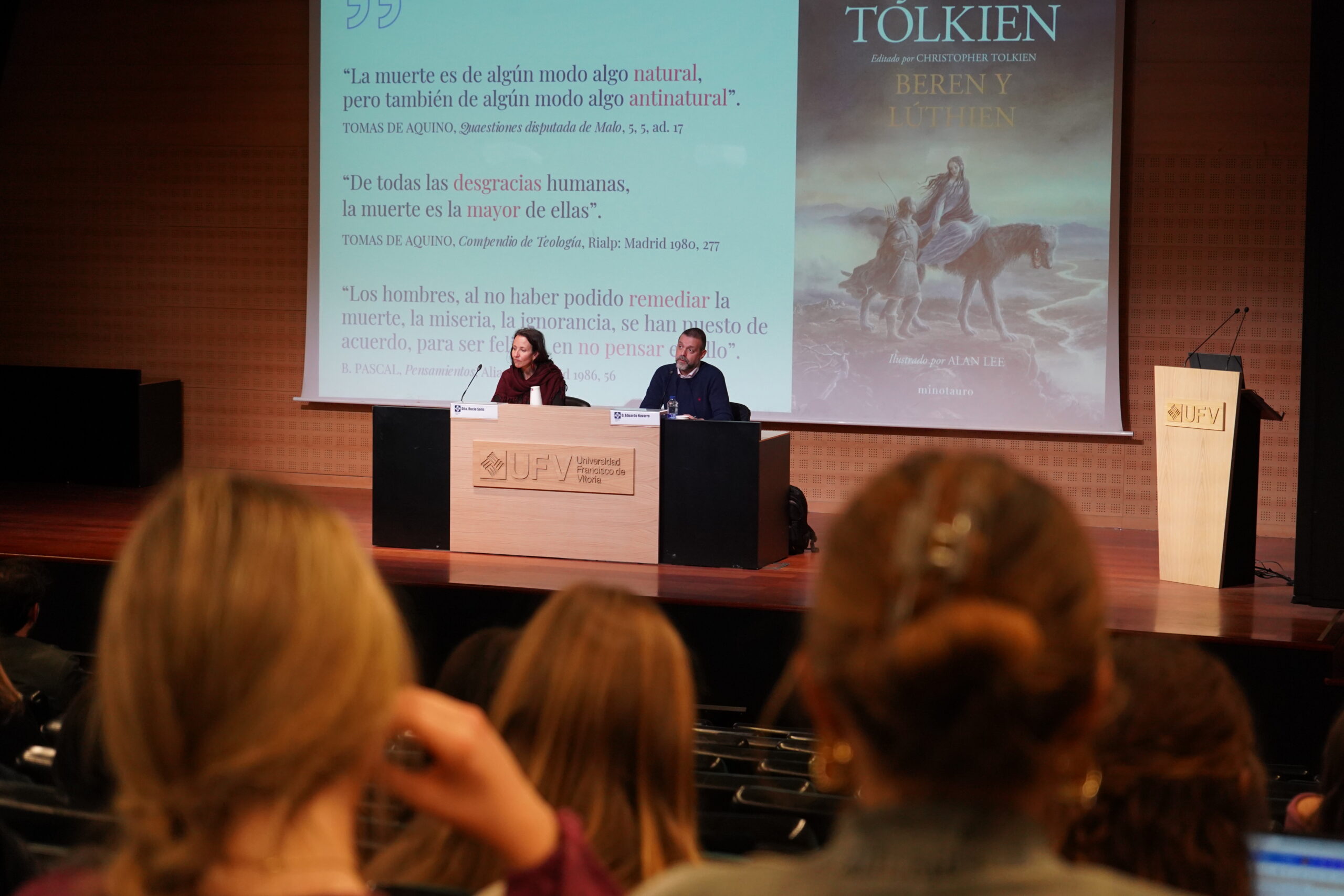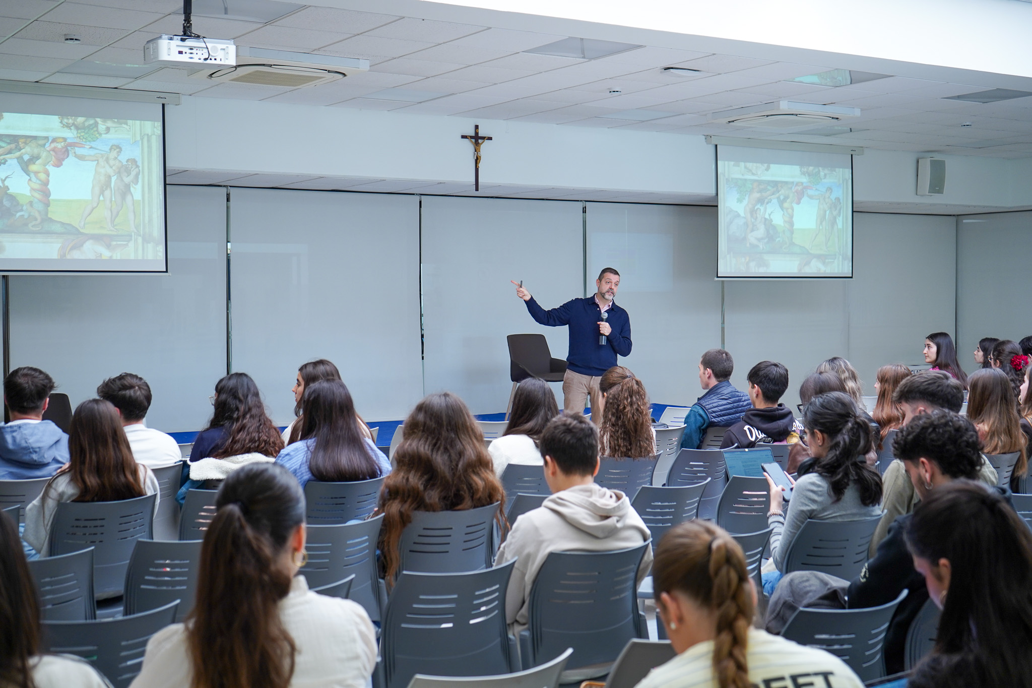 A través de varias referencias cinematográficas, el profesor Eduardo Navarro nos introdujo la idea de la muerte como aquello que da resplandor a la vida. Lejos de anular el drama que supone morir, profundizó en cómo puede iluminar hoy nuestra vida.